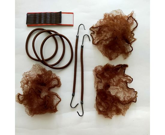 Набор для прически "Ненси" / Сетка на пучок / Набор резинок для волос / Невидимки для волос