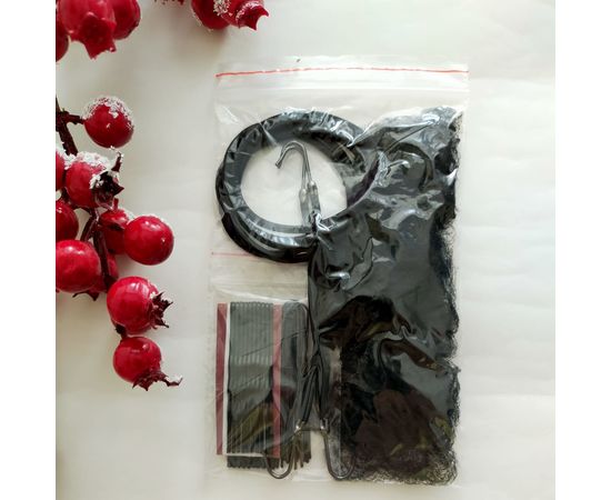 Также в набор входят незаменимые мелочи для прически: шпильки, невидимки, обычные резинки-кольцо.