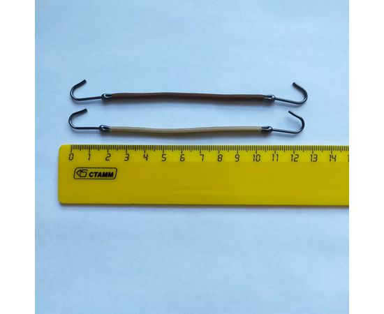 Длина резинки: 9 см (без учета крючков), растягивается до 20 см.