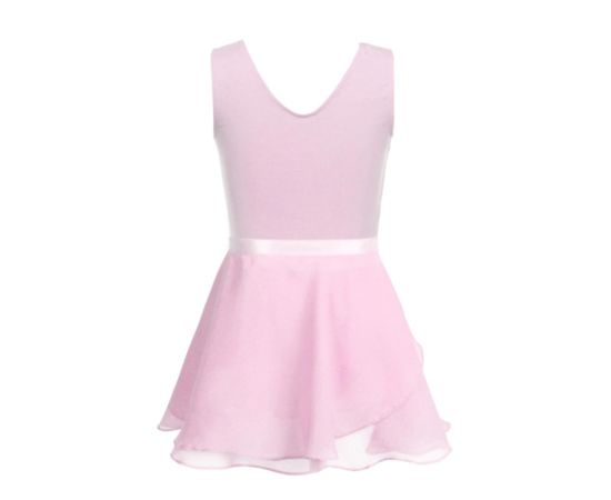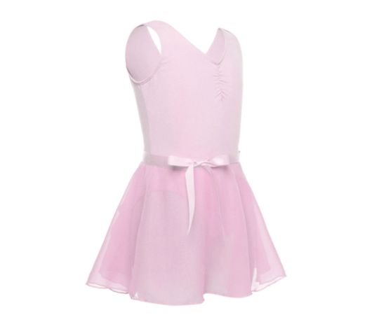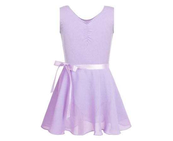 Танцевальный купальник детский без рукавов в комплекте со съемной юбочкой из шифона на завязке-ленте. Очень удобная одежда для танцев для девочки, подходит для занятий балетом, ритмикой, хореографией, гимнастикой. Красивые нежные цвета (в ассортименте). Ленту можно завязать бантом, обернув вокруг талии. Красивый и удобный комплект для вашей девочки. Все срезы (горловина, рукава и трусики) укреплены мягкой резинкой, что обеспечивает комфортную посадку и свободу движения ребенка на занятии. Девочке комфортно и удобно заниматься. Ткань купальника для танцев ? хлопок + эластан, очень приятная для тела, легкая, позволяет коже ребенка дышать, при этом тянется, хорошо стирается. Служит долго, т.к. эластан в составе ткани делает одежду для танцев и гимнастики более мягкой и удобной для активного движения, повышает срок эксплуатации танцевального купальника для девочки.