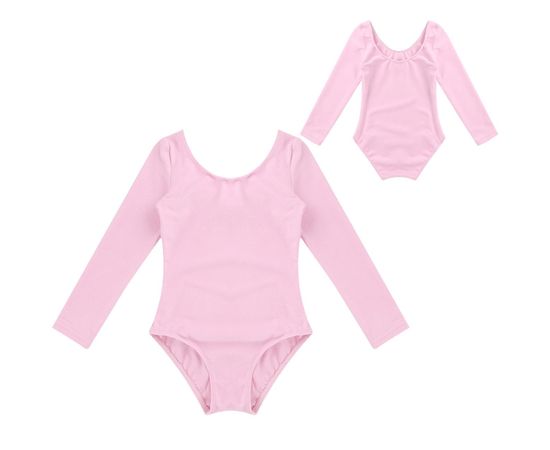 Однотонный купальник для танцев детский iEFiEL с длинным рукавом.