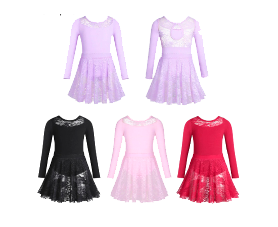 Купальник для танцев детский с длинным рукавом в комплекте со съемной кружевной юбочкой на резинке. Идеальная одежда для танцев, балета, хореографии, ритмики, гимнастики. Комплект выглядит как красивое и идеально сидящее платье, плюс можно носить по отдельности. Комбинируйте юбочку для танцев с леггинсами и маечкой, или гимнастический купальник - с колготками, и получите новые варианты одежды для танцев или гимнастики для вашей девочки.