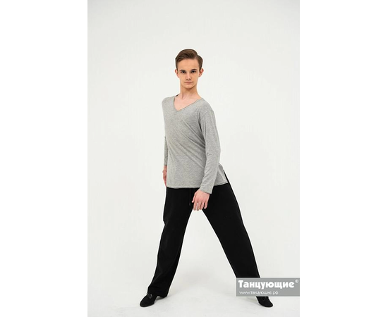 Мужской тренировочный лонгслив свободного кроя для спортивных бальных танцев. Края изделия обработаны по технике "открытый срез". С двух сторон боковые разрезы.