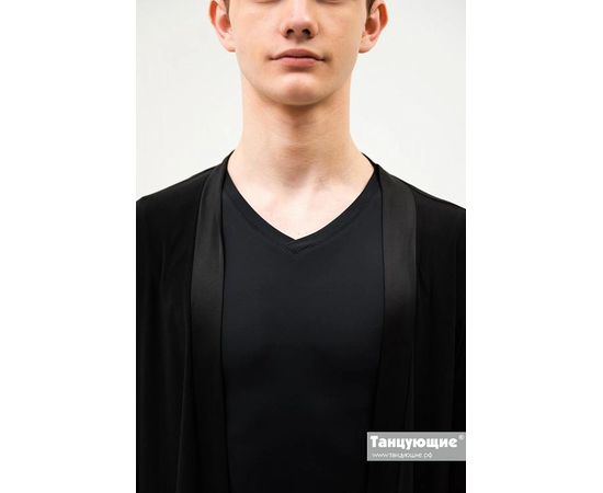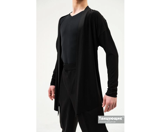 Мужской тренировочный кардиган струящегося силуэта для спортивных бальных танцев. У кардигана скошенная удлиненная полочка.