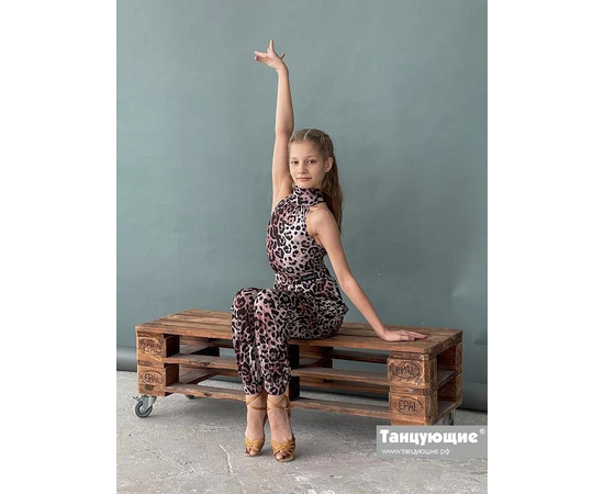 Женские тренировочные брюки для бальных танцев Glory выполнены из масла с принтом "Леопард". Пояс на резинке. Низ брюк также оформлен резинками.