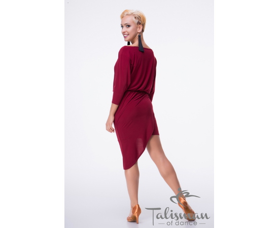 Платье для латины с рукавом "Летучая мышь" и двуслойной юбкой